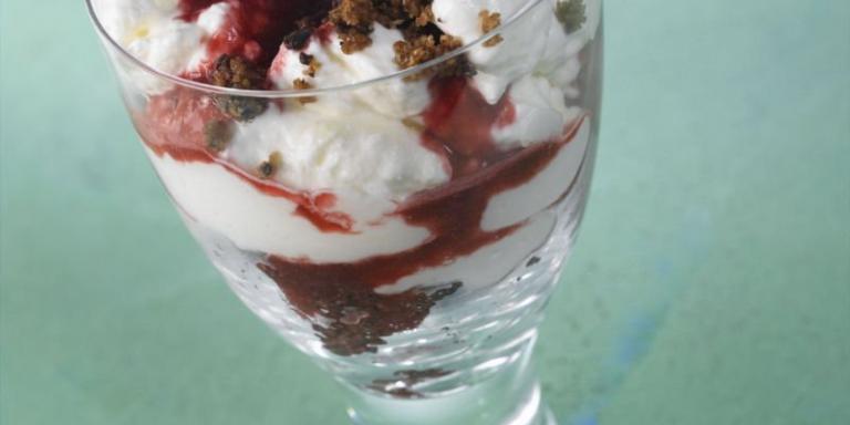 Rahkaa, muruseosta ja pyreetä yhdistettynä raikkaaksi välipalaksi. Ruis-suklaasuukko sopii vaikka kokousvieraille tai tarjolle vitriiniin! Ainekset 10 annosta, annoskoko 160 g annosta Muruseos: 200 g Myllyn Paras Ruiskorppujauhoja 130 g tummaa suklaata rouheena 40 g fariinisokeria 150 g Valio Play maitokahvijuomaa, laktoositon Rahkaseos: 400 g Valio laktoositonta vispikermaa 500 g Valio laktoositonta maustettua rahkaa, sitruuna 100 g Findus vadelmapyreetä 15 g sokeria Ohje Sekoita muruseoksen aineet keskenään. Vaahdota kerma ja lisää joukkoon rahka. Kokoa annokset jälkiruokamaljoihin. Laita pohjalle reilusti muruseosta (45 g annos), päälle sitruunarahka (100 g annos). Tee lusikalla rahkan keskelle syvennys ja upota siihen vadelmasilmä (10 g annos). Ripottele pinnalle muruseosta. Resepti: Myllyn Paras, Findus ja Valio