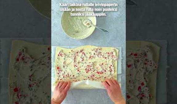 - Kääri taikina rullalle leivinpaperin sisään ja nosta rulla noin puoleksi tunniksi jääkaappiin.